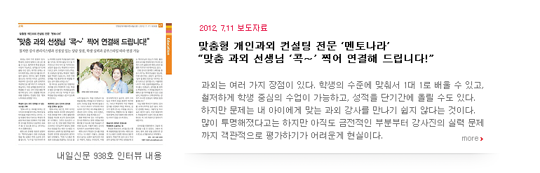 멘토나라 평촌점 제 960호 내일신문 보도 자료
